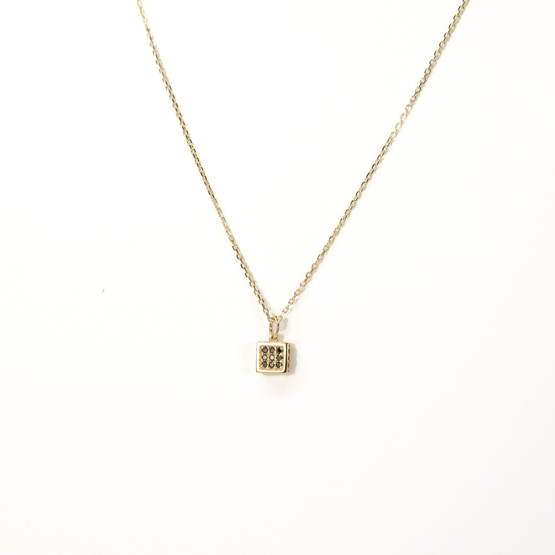 This Diamond Box Necklace features a modern square design crafted from solid gold and 20 flawless black diamonds. Each diamond is precisely cut and securely set, making this an exquisite accessory that will last for years. Unleash your inner shine with this luxurious piece of jewelry.